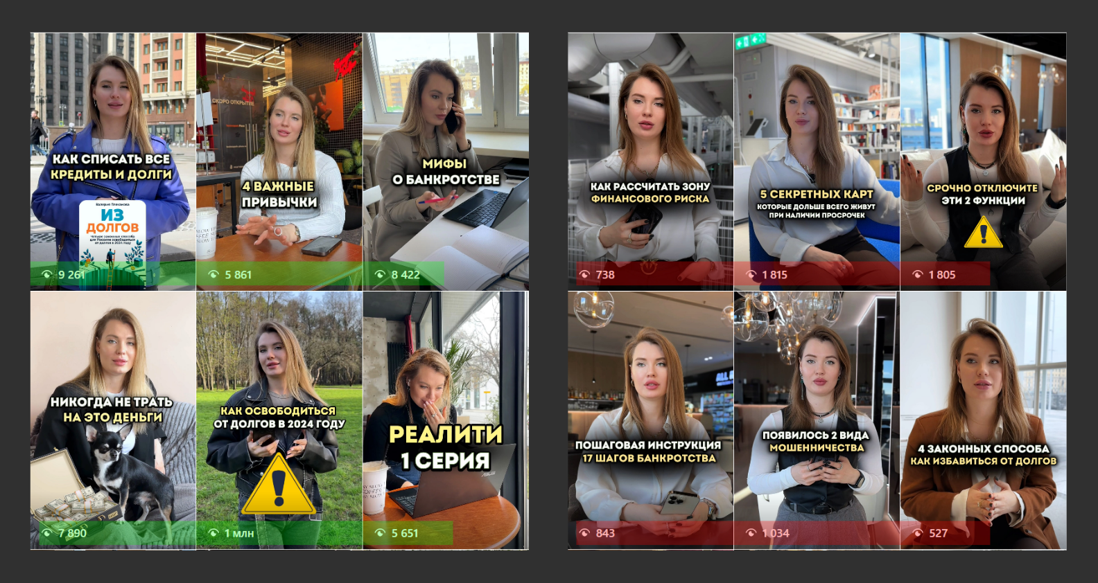 Она сделала ставку на рилсы. Ей повезло. Ролики стали залетать. С 2 тыс. аккаунт вырос до 14 тыс. за месяц. В неделю стало приходить по 100 заявок на диагностику. Юрист не успевала их обрабатывать.