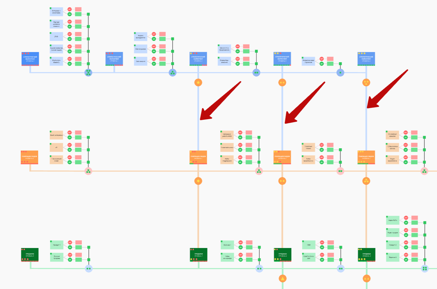 Мы не строим раздел продажи раньше, чем настроили хотя бы один канал трафика. Каналы трафика мы не настраиваем, пока не прошли раздел стратегического маркетинга.