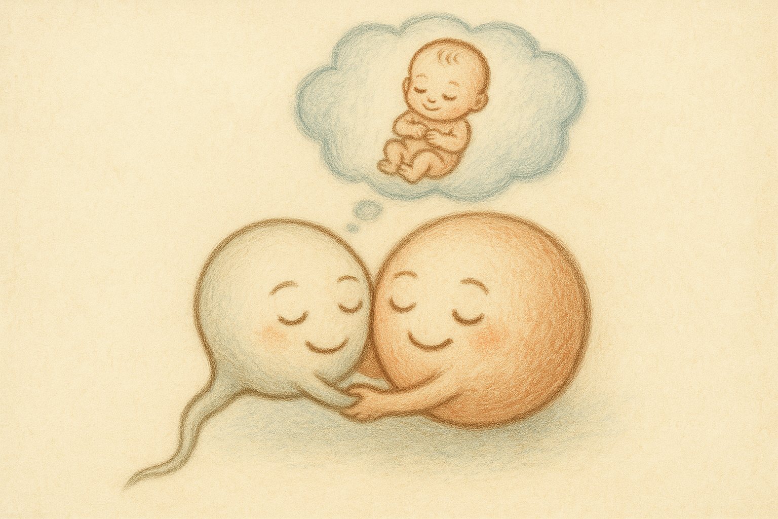 Миллионы сперматозоидов плывут по слизистой фаллопиевых труб. Победитель проникает в яйцеклетку. Вместо церемонии награждения происходит слияние генетического материала папы и мамы.