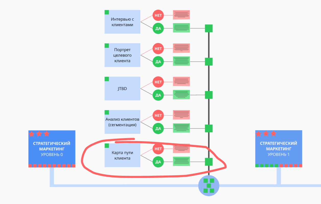 Оказалось, что проблема в разделе стратегического маркетинга — на этапе сегментирования ошибка. Отсюда клиентского путешествия нет. А путешествие не построишь, так как нет анализа ЦА. И вот так одно за другое цепляется, и в итоге — сбой в продукте, сбой в рекламных каналах, реклама не работает.